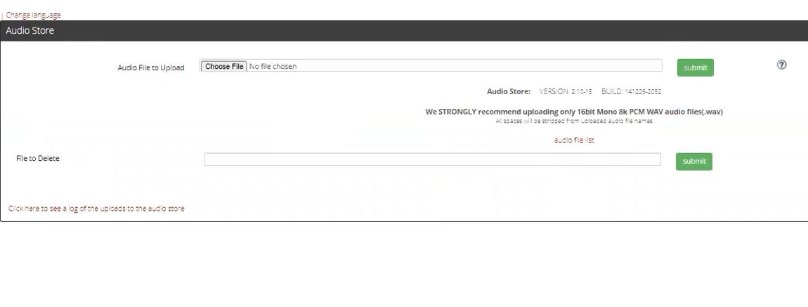 The dialer recognizes only two very specific audio formats in the system whether it\’s for the voicemail drop, hold music, or IVR. It should be: